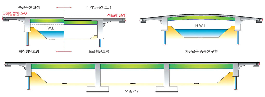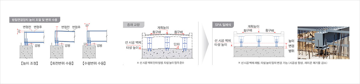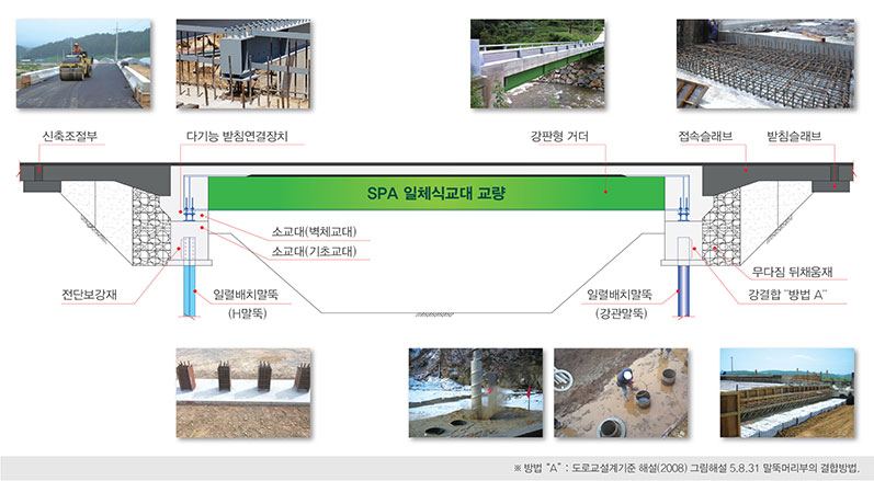 | 구분 | SPA일체식교대 교량 | 강판형 조인트 교량 | 강판형 라멘교 | PSC빔 조인트 교량 | |