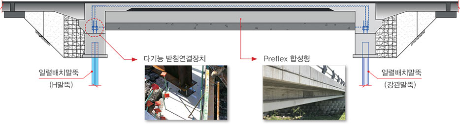상부 구조로 프리플렉스 합성형 거더를 적용하여 저형고, 장지간 가능