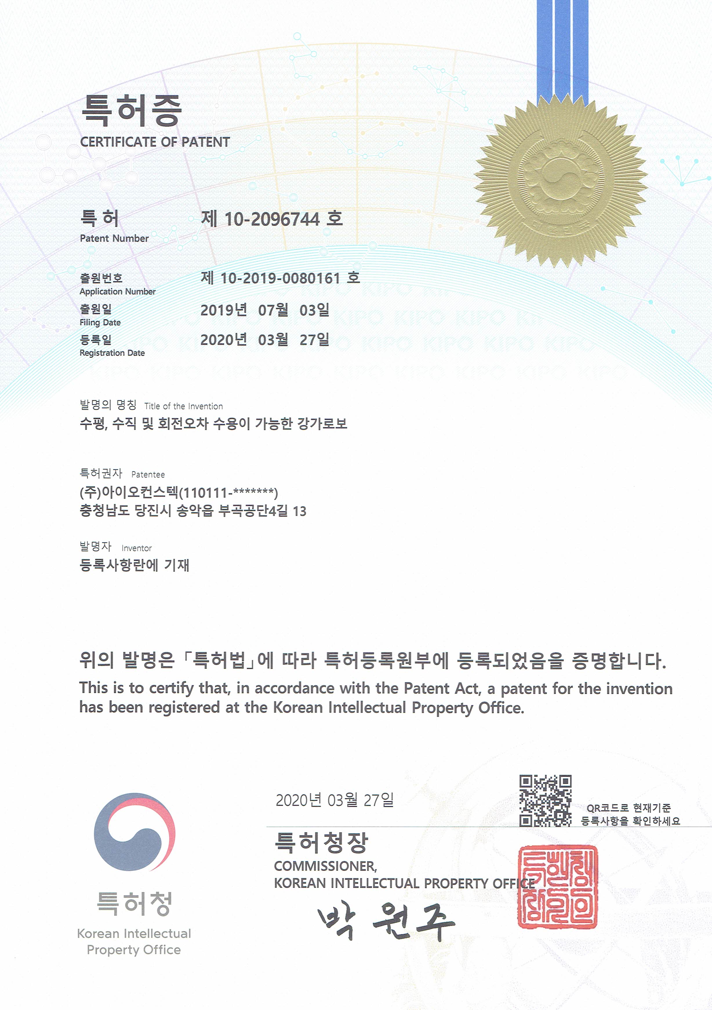 수평, 수직 및 회전오차 수용이 가능한 강가로보